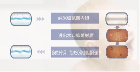 1.纳米银搪瓷抗菌内胆。纳米银离子具有强效抗菌、稳定性好、抗菌持久、安全环保的优势,博远(活水版)系列在静电干粉搪瓷内胆中增加纳米银离子,能有效杀灭水中常见细菌。